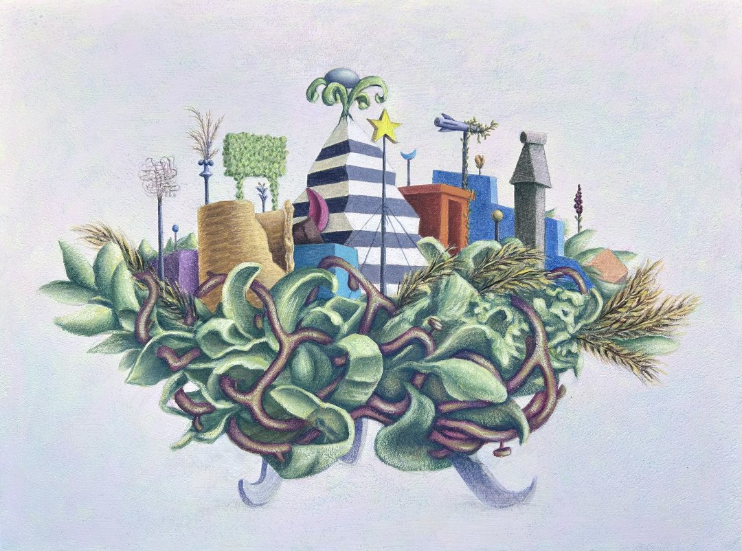 View fullsize   Stowaway , 2021, acrylic and flashe on panel, 18”x24”