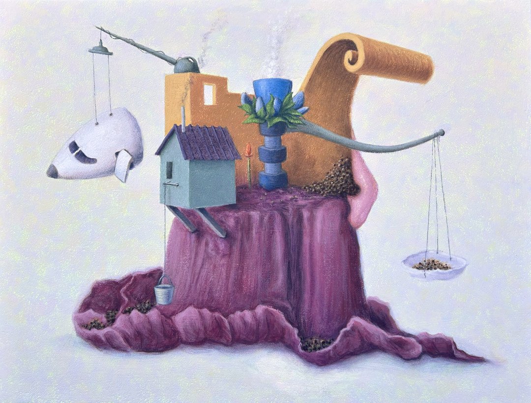 View fullsize   Teeter , 2019, acrylic and flashe on panel, 10”x12”